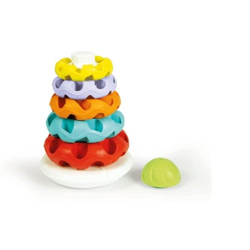 I diversi colori, dimensioni e texture stimolano la curiosità del bambino, che si divertirà a prendere, impilare e smontare gli anelli in tanti modi diversi.