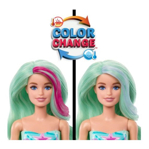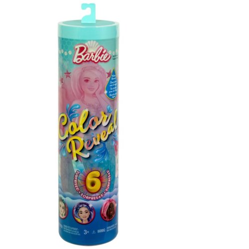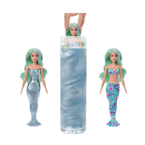 Scopri la magia subacquea con le Barbie Color Reveal Serie Sirena! Ogni bambola è un vero mistero: immergila in acqua e guarda il corpetto cambiare colore, rivelando il look segreto della sirena.