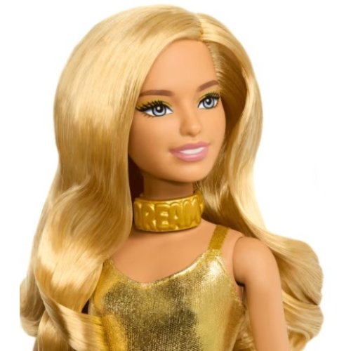 Con il suo abito dorato scintillante e gli accessori coordinati, Barbie è pronta per le occasioni più esclusive e per essere la protagonista di ogni collezione.