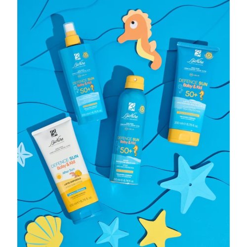 Il latte solare fluido BioNike Defence Sun Baby & Kid SPF 50+ è studiato per offrire una protezione molto alta alla pelle delicata e sensibile di bambini e neonati, difendendola efficacemente dai raggi UVB e UVA.