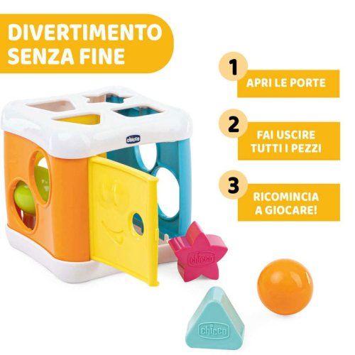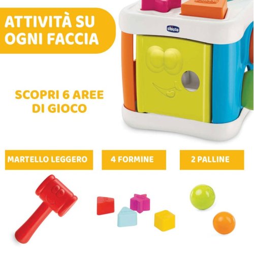 Il Cubo Incastra e Martella 2in1 di Chicco è un gioco educativo pensato per accompagnare lo sviluppo motorio e cognitivo dei bambini dai 10 mesi in su.