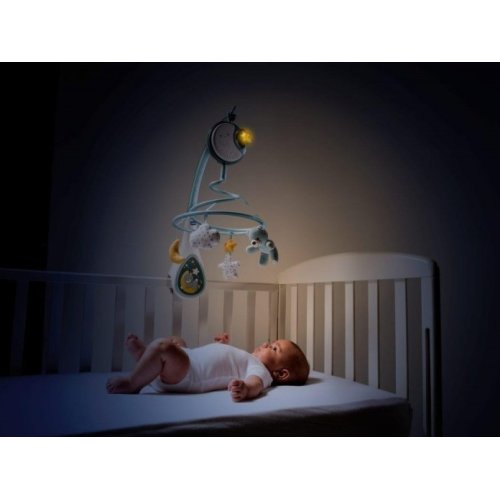 Pensata per adattarsi perfettamente a tutte le culle, inclusa la Next2Me, combina design elegante, musica rilassante e giochi morbidi per creare un ambiente rassicurante e stimolante.