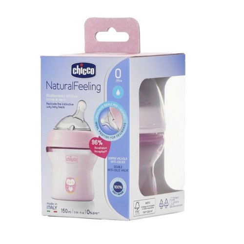 CHICCO NATURAL FEELING - BIBERON ANTICOLICA FLUSSO LENTO 0+ MESI 150 ML , Girl
