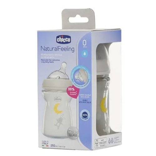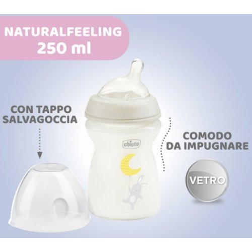 CHICCO NATURAL FEELING - BIBERON IN VETRO 0+ MESI 250 ML