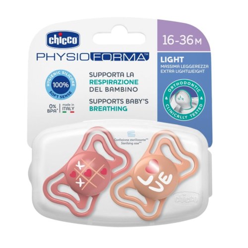 Il Succhietto Chicco PhysioForma Light è progettato per offrire il massimo comfort ai bambini dai 16 ai 36 mesi, accompagnando il corretto sviluppo della bocca anche nelle fasi di crescita più avanzate.