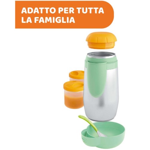 Il Chicco Thermos Portapappa & Portabiberon è l’accessorio indispensabile per i genitori sempre in movimento che desiderano trasportare pappa e biberon mantenendo la temperatura ideale ovunque si trovino.