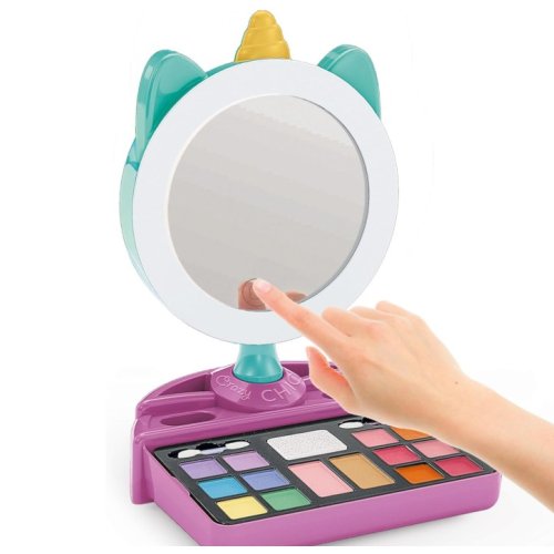 Pensato per le bambine che amano il make-up e il mondo magico degli unicorni, questo kit unisce trucco, specchio e illuminazione speciale per giocare come vere star del glamour.