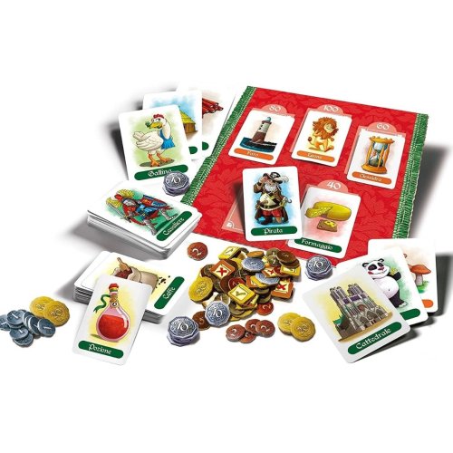 Con le sue coloratissime carte illustrate e la dinamica coinvolgente delle aste, questo gioco trasforma ogni partita in un momento di risate, strategia e colpi di scena.