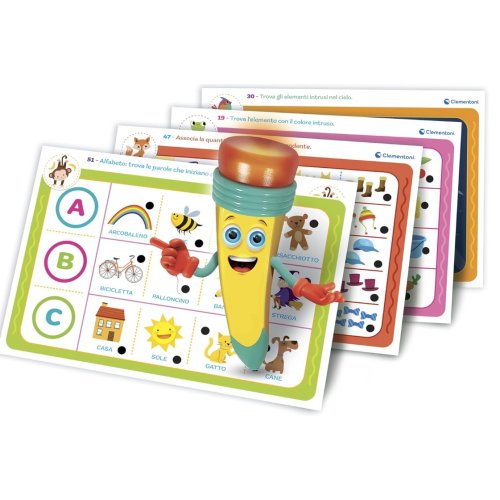 Il cuore del gioco è la Penna Parlante, uno strumento interattivo e coinvolgente che guida i bambini passo dopo passo nell’apprendimento. Toccare la risposta corretta con la penna attiva luci, suoni e frasi incoraggianti, trasformando ogni risposta giusta in un piccolo traguardo da festeggiare. Se invece la risposta è errata, la penna segnala l’errore, invitando il bambino a riprovare, favorendo così l’apprendimento attraverso l’autocorrezione.