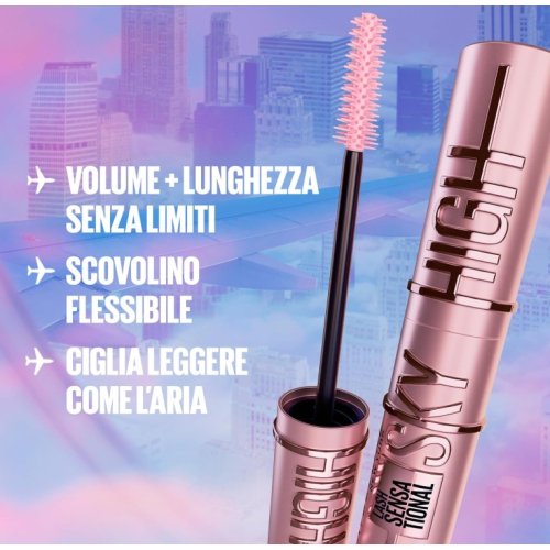 Il Lash Sensational Sky High dona alle ciglia volume estremo e lunghezza vertiginosa da ogni angolazione, per uno sguardo sensazionale e definito.