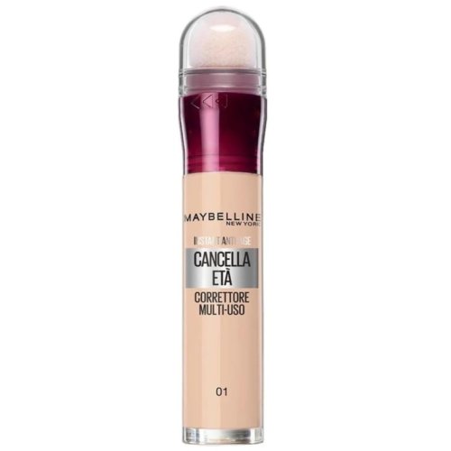 Correttore Instant Anti-Age Il Cancella Età – Tonalità Light (01): il celebre correttore Maybelline che attenua occhiaie e segni di stanchezza. Grazie alla formula con bacche di goji e Haloxyl, illumina il contorno occhi, leviga la pelle e dona un aspetto riposato e uniforme.