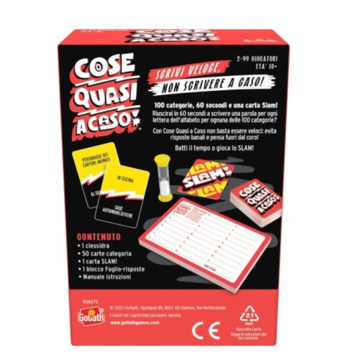 PARTY GAME PER TUTTA LA FAMIGLIA : COSE QUASI A CASO è un party game per famiglie che crea risate e stimola la competizione. Scrivi più parole possibili in 60 secondi seguendo la lettera e la categoria indicata!