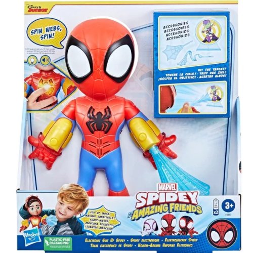 Direttamente dalla serie animata di successo Disney Junior – Spidey and His Amazing Friends, questo personaggio di Spider-Man è pronto per salvare la giornata con la sua agilità e i suoi superpoteri.