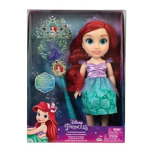 Questa bambola Disney Princess riproduce fedelmente il personaggio del celebre film, con lunghi capelli rossi, coda luccicante e un look curato nei minimi dettagli.