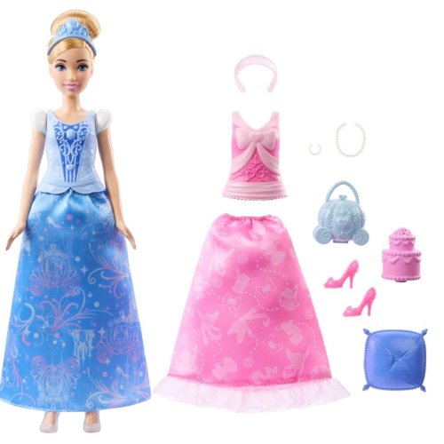 Questa splendida bambola permette di trasformare Cenerentola da ragazza semplice a principessa da ballo, grazie agli accessori inclusi che rendono il gioco ancora più divertente e incantato.