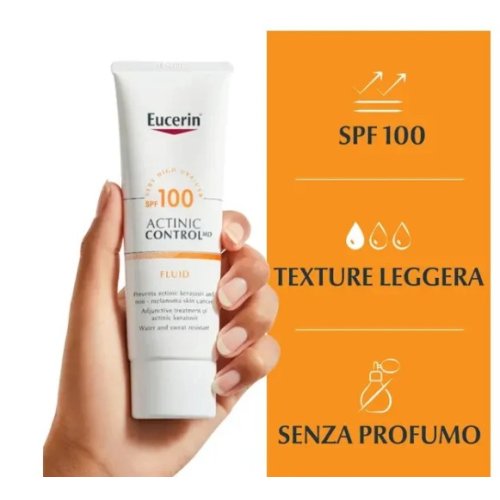 Eucerin Actinic Control SPF100 è una protezione solare avanzata ad altissimo fattore, formulata per offrire una difesa efficace contro i danni causati dai raggi UV, inclusi quelli associati alla formazione di cheratosi attiniche e altre alterazioni cutanee dovute all’esposizione solare.