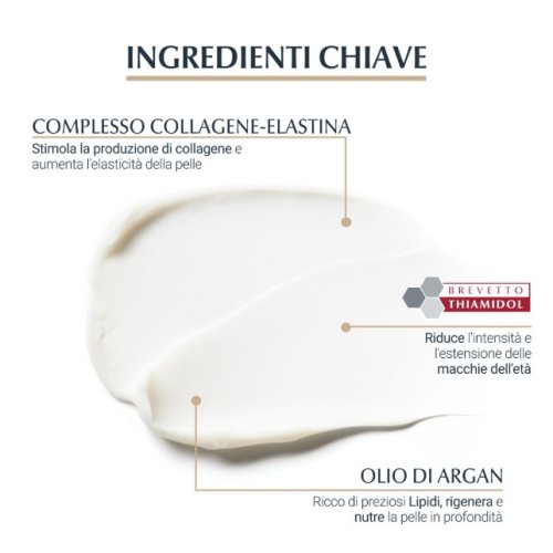 La sua formula combina Acido Ialuronico a diversi pesi molecolari, che riempie le rughe dall’interno, con Arctiin, un principio attivo che stimola il rinnovamento del collagene, e con Olio di Cardo Mariano, noto per le proprietà nutrienti e rigeneranti.