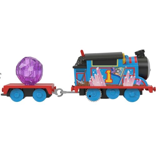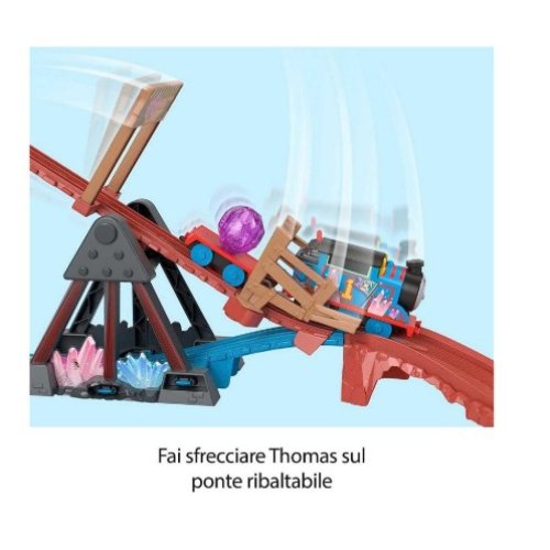 Il playset include un trenino Thomas motorizzato e una pista ricca di dettagli che guidano il piccolo esploratore tra cristalli luccicanti, passaggi segreti e punti d’azione.