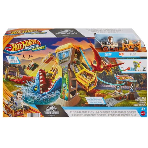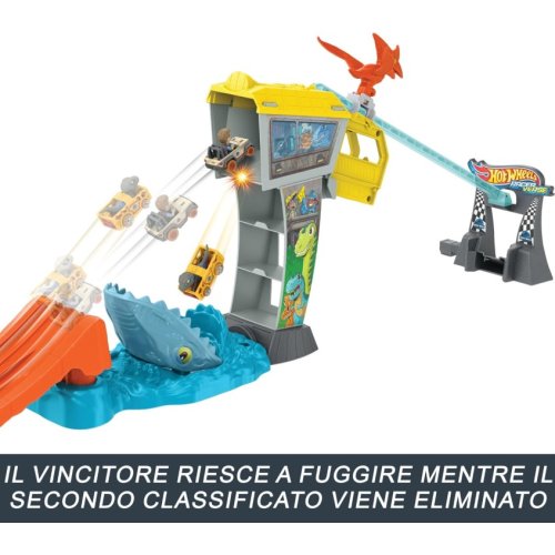 Direttamente dall’isola di Jurassic World, questa pista combina l’emozione delle corse Hot Wheels con l’azione dei dinosauri più temuti.