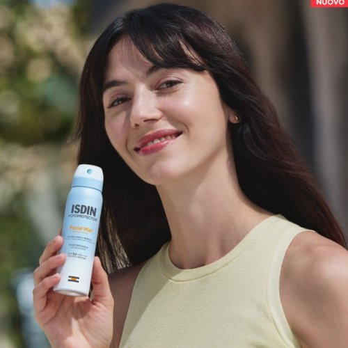 ISDIN Fotoprotector Facial Mist SPF50+ è uno spray solare viso innovativo in formato bruma ultra-fine e invisibile, progettato per offrire protezione molto alta (SPF50+) contro i raggi UVB e UVA, oltre a contribuire alla difesa dalla luce blu (HE-VL).