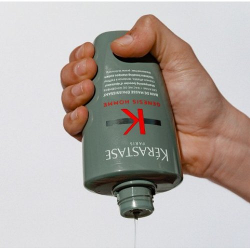 Rinforza e proteggi i tuoi capelli ogni giorno con Kérastase Genesis Homme Bain de Force Quotidien, lo shampoo professionale per capelli forti e resilienti.