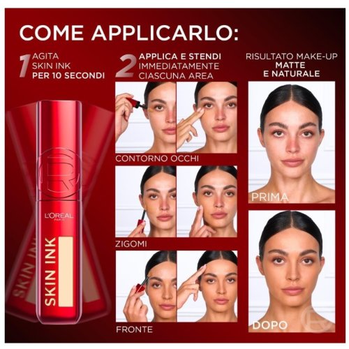 Scopri il segreto di una pelle perfetta con L’Oréal Paris Skin Ink, il fondotinta e correttore 2 in 1 che offre coprenza impeccabile e comfort assoluto fino a 48 ore.