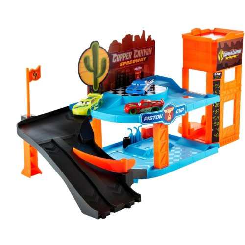 I bambini potranno immaginare mille storie, fare rifornimento, riparare le auto o lanciarsi in gare mozzafiato grazie alla pista di discesa.