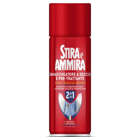 Lo smacchiatore a secco di Stira e Ammira rimuove facilmente, rapidamente e senza lasciare aloni tutti i tipi di macchie, soprattutto quelle più ostinate e di natura grassa (olio, burro, salse, grasso alimentare) dai tessuti lavabili e non lavabili (divani, tappezzeria, tappeti ecc). È risolutivo in caso di macchie inattese e impiegabile anche come pre-trattante prima del lavaggio sulle macchie più difficili.