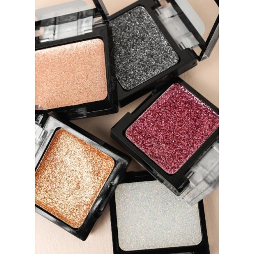Formula: Ombretto in polvere compatta con particelle glitter già mescolate, facile da applicare sulla palpebra.